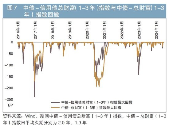另外,指数供应商计算指数点位时采用的成分券取价源也是管理人关心的方面。各家指数供应商采用各自的成分券取价源对指数进行计算,这些取价源和基金估值时采用的第三方估值基准服务机构提供的估值方法存在差异。估值差异将带来天然的跟踪误差,这种差异主要体现在最大回撤。因此管理人会倾向于采用估值差异更小的指数。由于公募基金持有银行间债券多数采用中债估值,基金管理人倾向于选择中债指数作为场外信用债指数基金的跟踪标的。