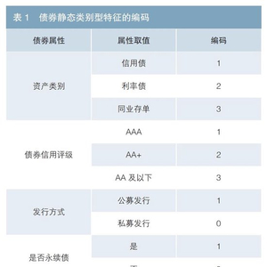 数据选取市场中未到期的债券样本,并加工动静态特征。按照表1的编码方式,将类别型特征转换为数值型特征,并对缺失特征进行填充,确保数据的准确性和一致性。