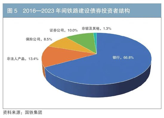 铁道债投资者以商业银行为主,政策性银行、证券公司、保险公司、非法人产品、信用社、非银机构等均参与。2016—2023年间,银行(含政策性银行)、证券公司、保险公司、非法人产品、非银及其他机构的投资占比分别约66.8%、10%、8.5%、13.4%、1.3%(见图5)。