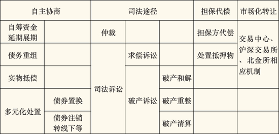 从处置特点看,债务人如未丧失经营能力,或偏好选择自筹资金延期支付,表达偿债意愿维护公开市场声誉。债务重组中条款协商、展期、增信、转股,甚至涉及诉讼等环节复杂,耗时较长。债券置换本质上并未直接解决债券违约,而是实现债务人勿需还旧的情况下发新。债券发行文件中多未引入仲裁条款,更未涉及触发和处置条件。司法求偿诉讼周期漫长,受偿债意愿影响大,其间所涉及的资产保全执行难,清偿率无法保障。司法途径为最终手段,金融机构难以有效在诉讼、重整及清算过程中协调多方利益,处于弱势地位。实践中,虽然在2020年后债券违约处置机制全面升级(见表2),弥补了发行架构、集体行动及投资者保护机制等诸多缺陷,但普通法与大陆法在信托制度等方面存在本质差异,还需研究提升债券违约后处置实践的兼容性。