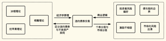违约债交易涉及的代表性经济学理论包括金融业务创新理论下的风险转移型创新、最优决策理论、投资组合理论、冰棍效应、烂苹果理论、根雕理论等等,以上代表性理论中的后四种也运用于我国不良资产处置领域的实践。当前我国评级机构对债券违约认定存在差异,但评级为CCC及以下的债券具有不良资产显著特性,或可直接称为不良债券。