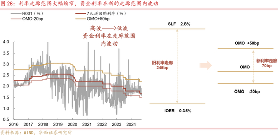 与此同时,今年7月以来,央行货币政策工具箱有所扩充。临时正逆回购设立,作为逆回购工具的升级和补充,通过下午的临时正逆回购双向操作,调节市场短期资金余缺,可以视市场需求进行二次投放或资金回收。如税期、跨季等时点,央行通过临时逆回购释放额外资金,可以平抑预期外资金需求带来的扰动;而月初财政存款大量进入银行体系,可以通过临时正回购回笼过剩流动性。同时临时隔夜正逆回购操作,将市场隔夜资金利率框定在逆回购利率-20bp到逆回购利率+50bp区间。此前我国利率走廊上限是常备借贷便利(SLF)利率,7天期限为2.8%,下廊是超额存款准备金利率(IOER),利率为0.35%,上下限相差245bp。通过执行临时隔夜正逆回购操作,将走廊缩窄为70bp,也有利于资金利率预期维持平稳。