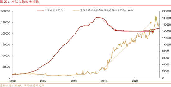 2015年之前,外汇占款是货币投放的重要渠道。2001年,中国加入世界贸易组织(WTO),进一步开放市场,促进了对外贸易的快速增长。2005年,人民币汇率形成机制改革,从固定汇率制逐步转向有管理的浮动汇率制。一方面在国际市场上的竞争力使得中国长期保持贸易顺差,大量外汇收入通过出口获得。另一方面随着中国经济持续高速增长,市场对人民币进一步升值的预期不断增强,吸引了大量套利资本流入。在此背景下,中国外汇储备迅速积累,至2014年末,中国的外汇储备达到接近4万亿美元左右的峰值。外汇占款的增加使得基础货币大量被动投放,对市场流动性管理形成压力,为了回收大量外汇占款所带来的过剩流动性,央行开始通过发行央票、上调法定准备金率来回笼资金。外汇占款的变化对货币政策操作和资金面具有重要的分析意义。