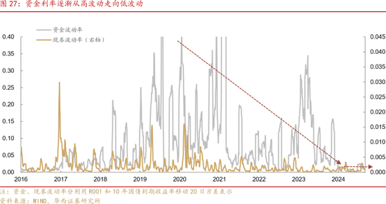 从历史上看,资金利率的波动往往高于现券,这也使得资金面的边际变化成为影响债市定价的关键因素之一。但今年以来,资金利率的波动率显著降低,体现在资金价格基本围绕7天逆回购利率上下波动。