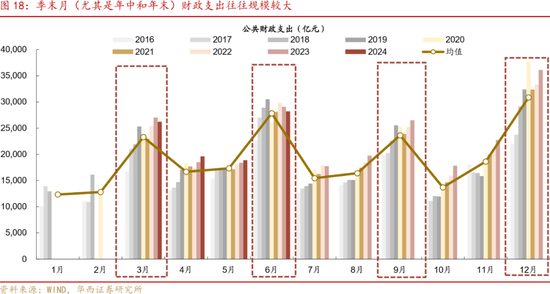 财政支出的定性规律,体现为显著的季节性特征,即季末月财政支出往往较高(3月、6月、9月和12月),尤其是年中和年末。不过,财政支出的具体时点存在较大的不确定性,同时又在跨月的敏感时点,财政支出的早晚也会造成资金面的波动,典型的是2023年10月末的小钱荒,财政支出比预期晚了一些,资金利率明显上行。