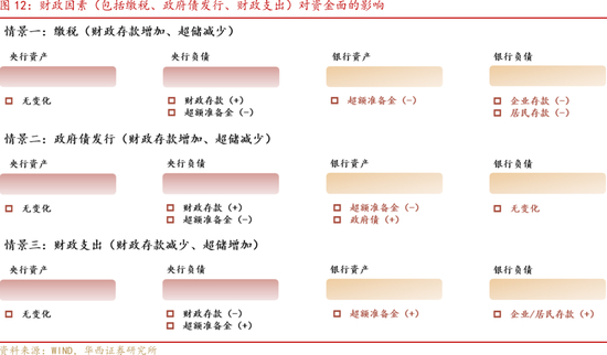 (一)财政因素:通过财政存款科目对超额准备金形成“吞吐效应”三大财政因素——缴税、政府债发行和财政支出,通过财政存款科目对银行超额准备金形成“吞吐效应”,近年来对资金面的影响愈发明显,接下来逐一分析缴税、政府债发行和财政支出对资金面的影响。