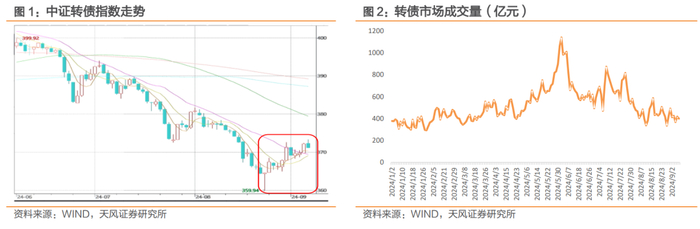 本周权益市场表现较弱,转债企稳。本周权益市场调整较多,万得全A收于3942.46点,周跌幅2.5%,转债在8月23日日内出现U型调整后,市场情绪有所修复,指数表现较权益更抗跌,中证转债收于371.11点,周跌幅0.05%。本周转债成交量仍维持低位波动,并未明显放量,但估值或已企稳,本轮低价中小盘转债修复较好。