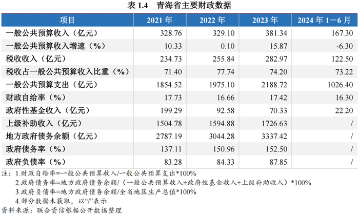 (二)青海省财政实力及债务情况