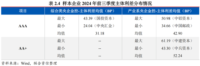 得益于中央企业信用背书,央企金控主体利差整体处于较低水平;受个体经营实力、外部支持及经营所涉产业风险等因素综合影响,各主体利差存在一定差异,但分化不明显。