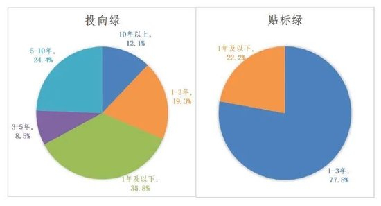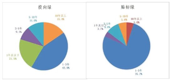深圳“投向绿”债券期限以中短期限为主,其中1年及以下的债券发行占比最高,为35.8%;其次为5-10年(含10年)债券,发行占比24.4%。其中,在深圳发行的“贴标绿”债券期限主要集中分布在1-3年(含3年),占比高达77.8%。