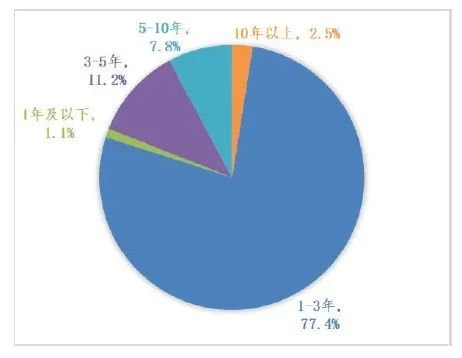 香港绿色债券期限主要为短期限,1-3年(含3年)债券发行规模占比最高,为77.4%;其次为3-5年(含5年)债券,发行规模占比为11.2%。