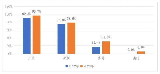 存续期披露占比:大湾区各区域2023年存续期债券数量为215只4,相较于2022年均有所增加。其中香港债券数量最多,为212只;其次为广东存续期95只,深圳存续期债券65只,澳门存续期债券34只。