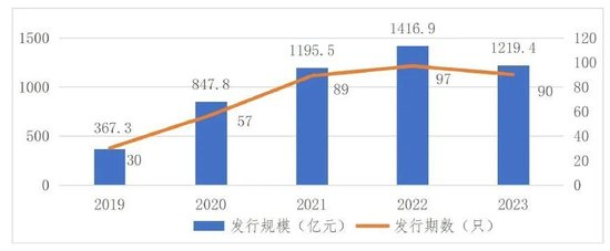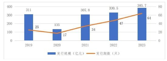 2023年,广东发行“投向绿”债券124只,规模1640.8亿元。其中“贴标绿”债券发行64只,规模385.7亿元。从发行规模和债券数量看,广东2023年绿色债券发行相较于2022年有所上升,自2019年以来整体呈波动上升趋势。