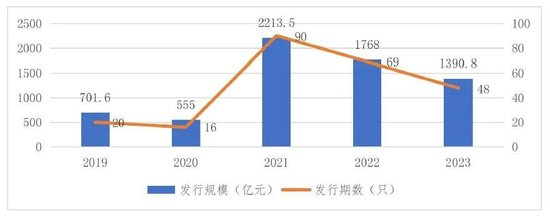 2023年,香港发行绿色债券48只,规模1390.8亿元。2023年香港绿色债券发行规模和债券数量相较于2022年均有所下降,且近三年呈现下降趋势。