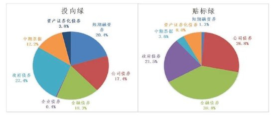 从债券品种构成来看,“投向绿”口径下,大湾区绿色债券品种构成分布较为均衡,其中政府债券、短期融资券、金融债券和公司债券占比较高。“贴标绿”口径下,金融债券、公司债券和政府债券的占比较高,构成主流发行品种;此外,有少量的资产证券化债券、中期票据和短期融资券发行。