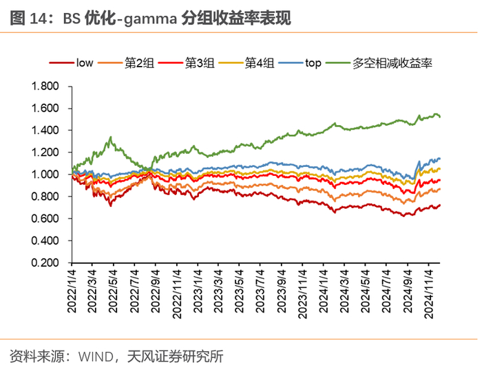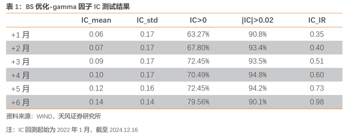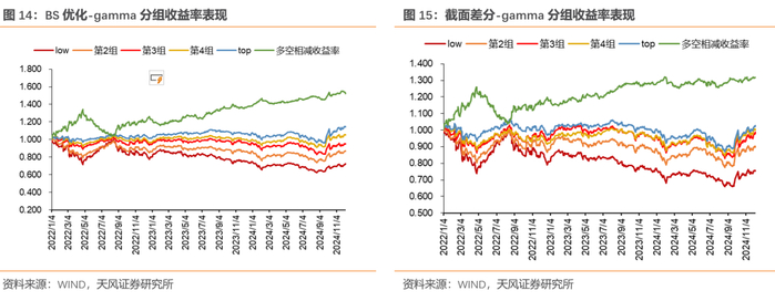 从因子的角度来看,回测结果表BS优化-gamma相对截面差分-gamma的因子收益率表现更好,其高gamma组相对低gamma组有持续稳定超额。且具有相对显著的IC表现。