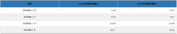 (3) 当前日均充放次数为0.3~0.5次,实际部分项目并未受电网调度(全部折算为2小时的配储,取0.5次),取日均放电次数0.25次;