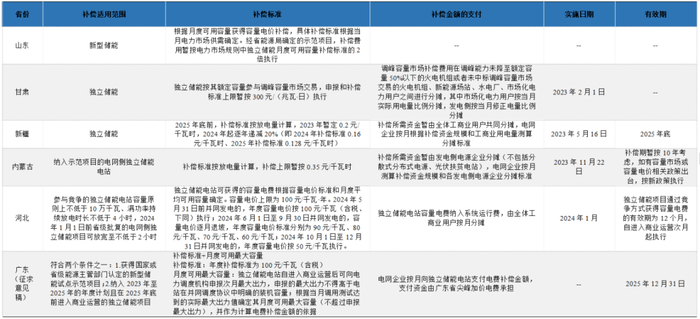 目前,我国尚未出台国家层面统一的独立储能容量补偿政策。针对新型储能前期投资规模较大、投资回报期长的特点,国内部分省份提出独立储能电站容量补偿机制,补偿标准一般以储能装机容量或充放电量而定,补偿资金由发电侧或用户侧承担。