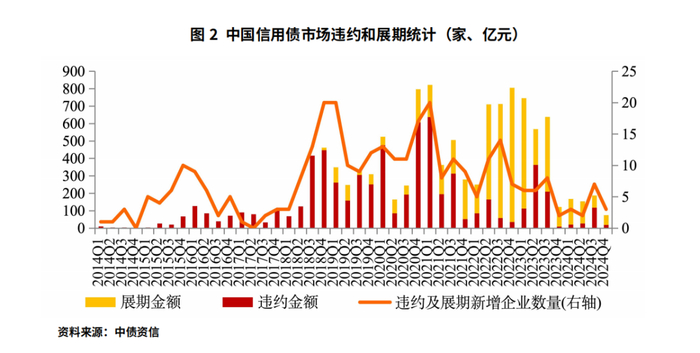 1本文关于违约及展期的数据统计均截至2024年12月20日,违约及展期数据引自中债资信违约数据库及万得;本文所指信用债包括一般公司债、私募债、一般企业债、一般中期票据、短期融资券、金融债(不包含政策银行债)、定向工具。