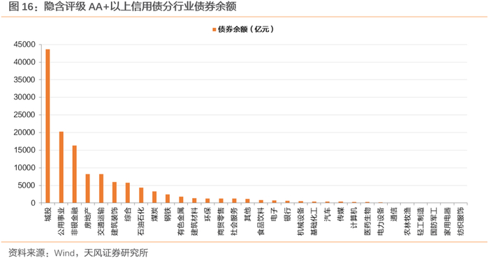 总结起来,对于高等级信用债投资,需要更为广阔的择券空间,在行业上要更为广泛,也更有利于抓住行业性投资机会。在兼顾安全性和收益的情况下,可以考虑在隐含评级AAA的债券中进行信用下沉。而为了保证安全性,可以考虑城投和国企产业债。