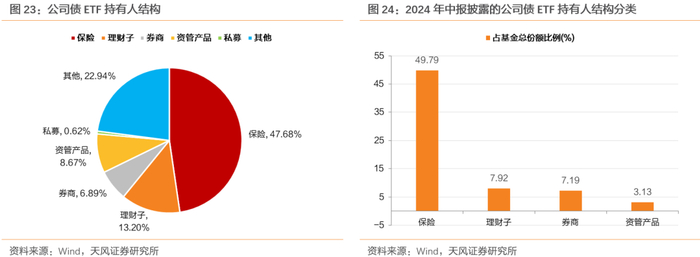 公司债ETF持有人以机构客户为主,占比达到98.80%,由于其久期维持在1.5年左右,回撤相对较小,作为一种短期现金管理工具,深受保险和理财偏好。此外,主要机构客群还包括券商、资管产品(年金社保养老FOF)和私募等。