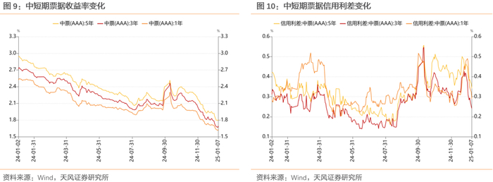 不同等级债券市场投资回报相差不大,但在市场回调之时,高等级债券回撤幅度明显较小。以中票为例,2年期AA中票和AAA中票2024年全年的投资回报差异不大,而在市场调整期时,比如2024年9月24日-2024年10月18日由于权益市场大涨而带来的债市调整中,回撤较小。