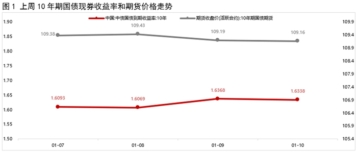 1月10日:周五,央行意外公告暂停开展公开市场国债买入操作,债市延续调整,但每逢调整即买机,加之年初配置盘仍欠配,债市一度走强,不过尾盘受资金面持续收紧影响,债市又有所回调。全天看,银行间主要利率债收益率多数上行,其中,10年期国债收益率下行0.30bp;国债期货各期限主力合约收盘多数下跌,其中,10年期主力合约跌0.04%。
