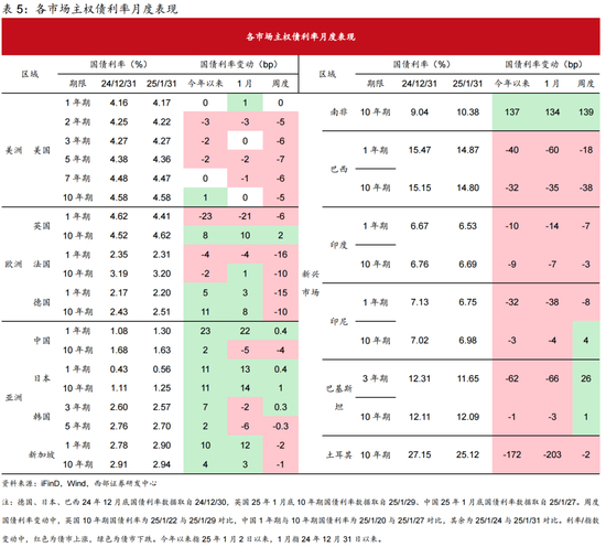 海外债市:25年1月美联储宣布暂停降息;新兴市场涨多跌少。