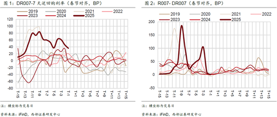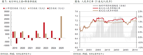 资金面或将边际好转,整体维持紧平衡。春节前资金整体偏紧,相较于近几年水平,DR007与7天逆回购差值高于季节性水平,核心原因是央行在当前稳汇率与防风险工作重点下,央行控制了流动性投放节奏:1)从1月整体来看,央行资金投放力度不小,通过质押式和买断式逆回购、MLF净投放2.9万亿,2024年12月和2025年1月通过质押式和买断式逆回购、MLF、国债买卖四大工具共净投放2.60万亿,近年来仅次于2022年12月和2023年1月的2.64万亿,显示了当前“适度宽松”“保持流动性充裕”的货币政策基调;2)从投放节奏来看,2018年以来,春节前央行多从当年12月开始大规模资金投放,次年1月维持投放规模或减小投放,而本次春节前12月净回笼了2830亿元,直到1月第三周才开始大规模投放资金、第四周14天逆回购并扩大投放规模,投放节奏后置;3)央行1月中宣布阶段性暂停国债买卖并上调跨境融资宏观审慎调节参数等稳汇率操作使得市场宽松预期后推。展望2月,央行或仍以稳汇率和防风险为工作重点,不过随着特朗普第一阶段关税落地,汇率对货币政策掣肘有望降低,且1月央行总量操作显示“适度宽松”“保持流动性充裕”的货币政策基调不变,虽然2月节后央行通常净回笼资金,但预计在央行总量呵护下,资金面相较1月或将边际好转,考虑到春节期间美元指数上涨,人民币或仍面临被动贬值压力,资金面大概率维持紧平衡。