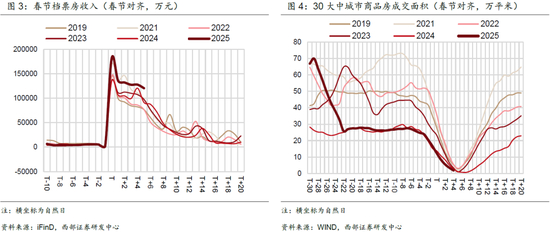 春节档票房创历史新高,地产仍待复苏。春节期间消费表现强劲,截至2月3日15时30分,2025年春节档总票房(含预售)突破80.2亿元,刷新中国影史春节档票房记录,其中正月初一(1月29日)票房收入和观影人次均创单日历史新高;从出行数据来看,春运前20日(1月14日-2月2日),全社会跨区域人员流动量达48亿人次,同比增长7.7%,春节假期前六日,北上广深地铁客运量共8843万人次,较2024年降低,高于2019年,整体高于季节性水平;不过春节期间地产销售弱于季节性,仍待复苏。