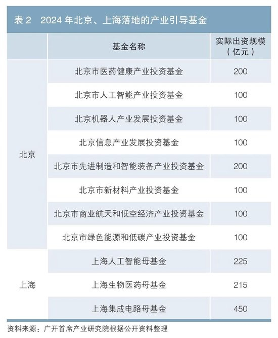 二是地方政府积极探索。与发达国家科技金融主要靠专业资本市场和金融机构驱动不同,我国科技金融发展进程的一个突出特点,就是地方政府和国有资本起到非常关键的推动作用。2024年7月,上海市成立三大先导产业母基金,计划出资总规模达1000亿元,聚焦集成电路、生物医药、人工智能等产业投资(见表2)。2024年10月,深圳市首次提出发展“大胆资本”,明确到2026年力争形成万亿级政府投资基金群、千亿级“20+8”产业基金群,以及百亿级天使母基金和种子基金群。此外,广州、北京、武汉、无锡等地围绕更好发挥政府投资基金作用,也先后出台支持重点产业发展的产业母基金或引导基金。