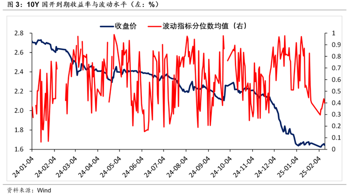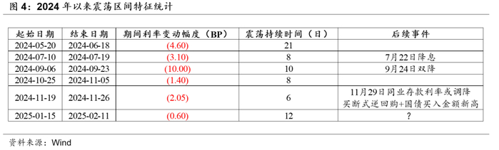 回顾过去一年的震荡行情,可以发现:降波的震荡行情最终会迎来波动率上升,放大波动的事件则可以分为:①外部冲击型,如监管压力、股市快速上涨等,或动摇广义债基负债端持有意愿,引起流动性冲击、带来行情剧烈波动;从其后续演化来看,外生变量实质上不涉及大周期的方向选择,其修复速度也比较可观,去年的几个较优入场点就诞生在此类行情中,适合采取分批买入的策略;②内生影响型,主要为货币政策变量和基本面变量。从去年几个震荡区间的终结来看,2024年5-7月货币政策主线不明,最终由7月22日降息打破;9月、11月震荡同样由增量货币宽松落地打破。相较外生扰动,内生因素才能决定利率下行空间是否真正打开。而由于债券市场存在明显的策略趋同,这类行情演进往往十分迅速,较难右侧追涨,这也帮助我们理解为何近期长端投资者持仓意愿始终较强。