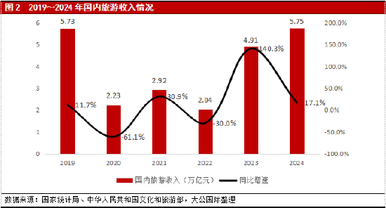2024年,受益于外部环境改善、宏观经济稳中增长,旅游行业快速复苏,进入稳步增长的发展阶段;旅游市场呈现出多元化、高质量发展态势,“旅游+”模式、跨境游等成为当前旅游行业消费热点。