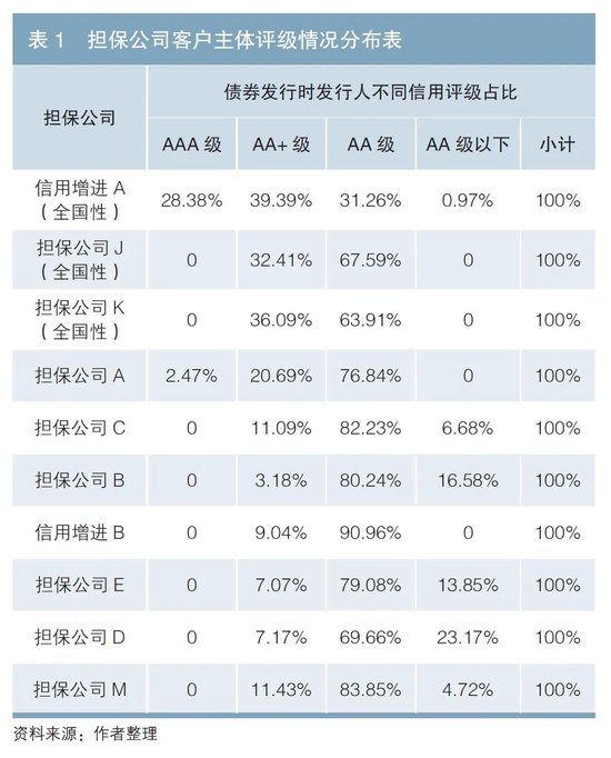 在担保放大倍数受限的情况下,担保公司之间担保能力、担保费等存在差异,导致债券担保市场呈现总体分层、部分重叠的格局。