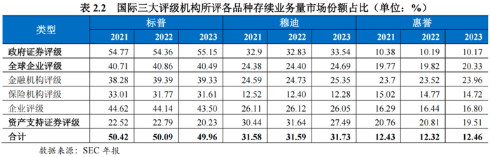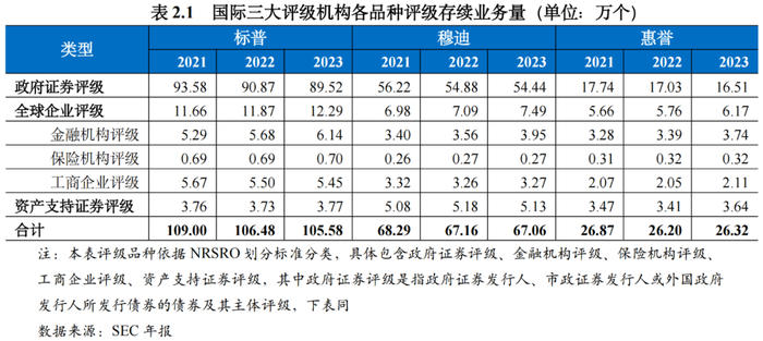 (一)国际三大评级机构业务存量小幅收缩,但依然占据优势地位4