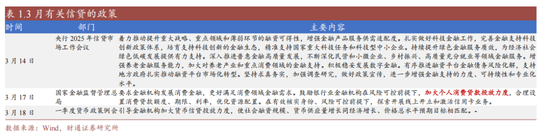 3月中消费领域支持政策加码,对3月信贷表现或有支撑。3月中下旬,金融监管总局要求“要求金融机构发展消费金融,更好满足消费领域金融需求”,随后消费贷市场进入“价格战”,多数银行消费贷利率快速下调,各行贷款额度也明显抬升进行冲量。