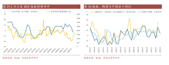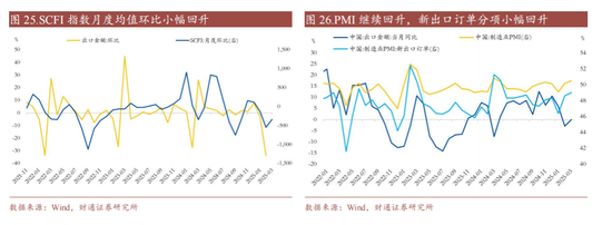 此外,3月中国PMI持续回升,其中新出口订单分项延续回升势头,但仍在荣枯线以下,且低于去年同期水平。