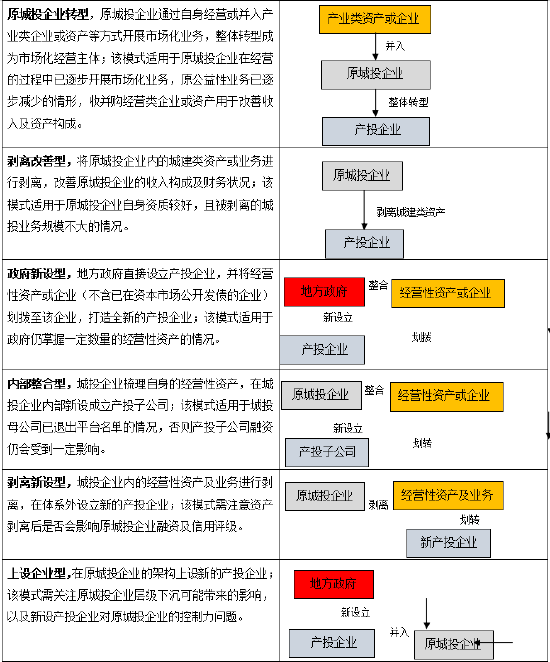 受相关政策的影响,城投企业的新增融资受到一定限制,为接续融资,产投企业加速组建。产投企业的组建主要包括以下几种方式: