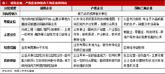 6、城投企业、产投企业及国有工商企业在职能定位、业务范围等方面的区别?