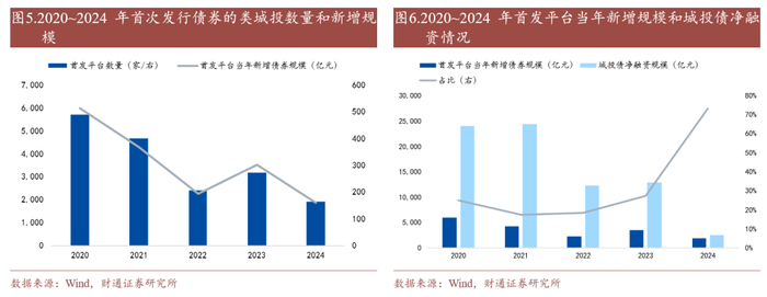 从新增节奏来看,2024年下半年以来融资平台新增呈现出逐步加速的态势,在2024年11月-2025年1月达到高峰。我们认为后续随着市场利率环境的好转,城投融资主体的增速或将会回升。