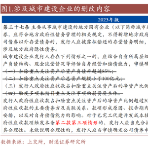 新指引删除了扣除重点关注资产后总资产规模小于100亿元的监管要求,删除了对扣除重点关注资产后资产负债率的关注,看起来城投的融资政策似乎有所放松。