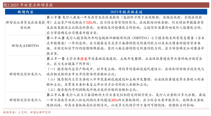 近期,协会信用债融资政策有变化;上交所也于2025年3月28日发布了《上海证券交易所公司债券发行上市审核规则适用指引第3号——审核重点关注事项(2025年修订)》。