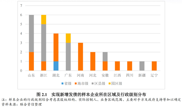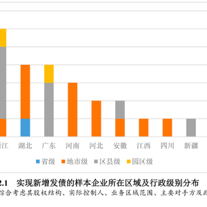 实现新增发债的样本企业主要位于经济发达的省市,地市级主体和区县级主体数量接近,但区域上呈现分化。