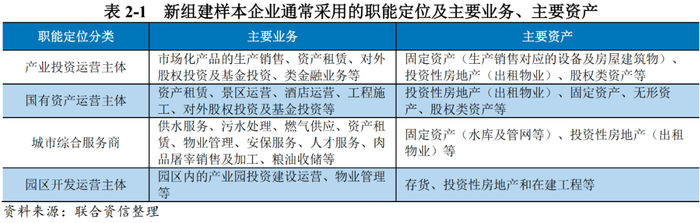 从新组建样本企业的职能定位来看,下表列举了较为常见的职能定位及主要业务、主要资产。