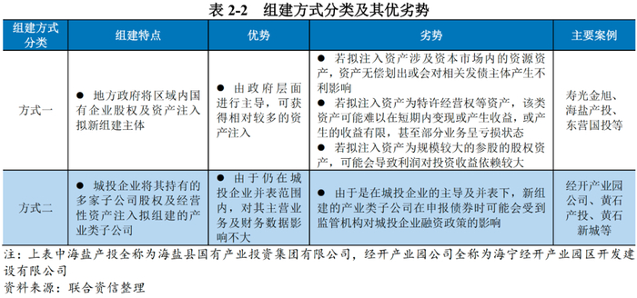 经过对新组建样本企业进行研究并结合评级实践来看,组建方式主要分为地方政府统筹区域内资源打造形成和城投企业内部打造产业类子公司两种。