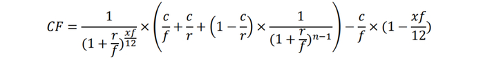 其中CF为转换因子,r为10年期国债期货合约票面利率3%,x为交割月到下一付息月的月份数,n为剩余付息次数,c为可交割国债的票面利率,f为可交割国债每年的付息次数。