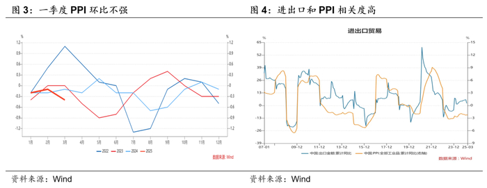 (1)由于贸易问题的不确定性(抢出口,抢转口对当前贸易数据会产生扰动),以及进出口流程的影响(现在出口的对应的是之前的订单。未来订单下降,需要过几个月反应在未来的出口数据中),导致当前的贸易数据未必客观反应贸易环境的变化。那么从价格上或更容易体现出贸易环境的真实变化,也反映经济的真实预期。例如,如果出口数据不错,而国内的商品价格也反弹,则说明是真实的需求好;如果出口好,但是价格出现下跌,则说明更多是抢出口抢转口带来的出口数据好,但市场已经开始担心外需下降带来的产能过剩问题更严重,进而导致国内的商品的价格下降。实际上,国内的PPI变化和进出口具有较强的相关性。