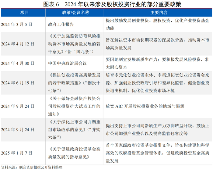 2024年以来,中国股权投资行业在政策层面呈现出引导发展、鼓励创新与持续规范监管的态势。相关政策围绕畅通“募投管退”关键环节,从多维度发力,旨在激发市场活力,壮大耐心资本,推动股权投资行业稳健发展,为实体经济发展和培育新质生产力提供有力支持。