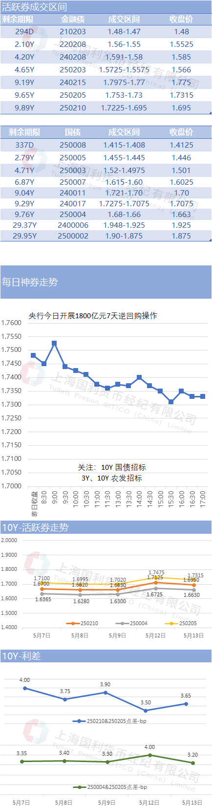 金融债方面:1年国开230202成交在1.47-1.49;1年非国开250411成交在1.46-1.4725;3年国开240203成交在1.575-1.5925;3年非国开250403在1.57-1.575;5年国开250203成交在1.5575-1.5725;5年非国开250405成交在1.6375-1.655;7年国开220220成交在1.745-1.755;7年非国开240307无成交;10年国开250205成交1.73-1.753;10年非国开250410成交在1.7925-1.8225。
