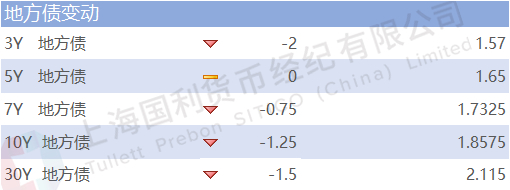今日地方债情绪略有转暖,整体收益率持续小幅下行,日内下行1-2bp。
